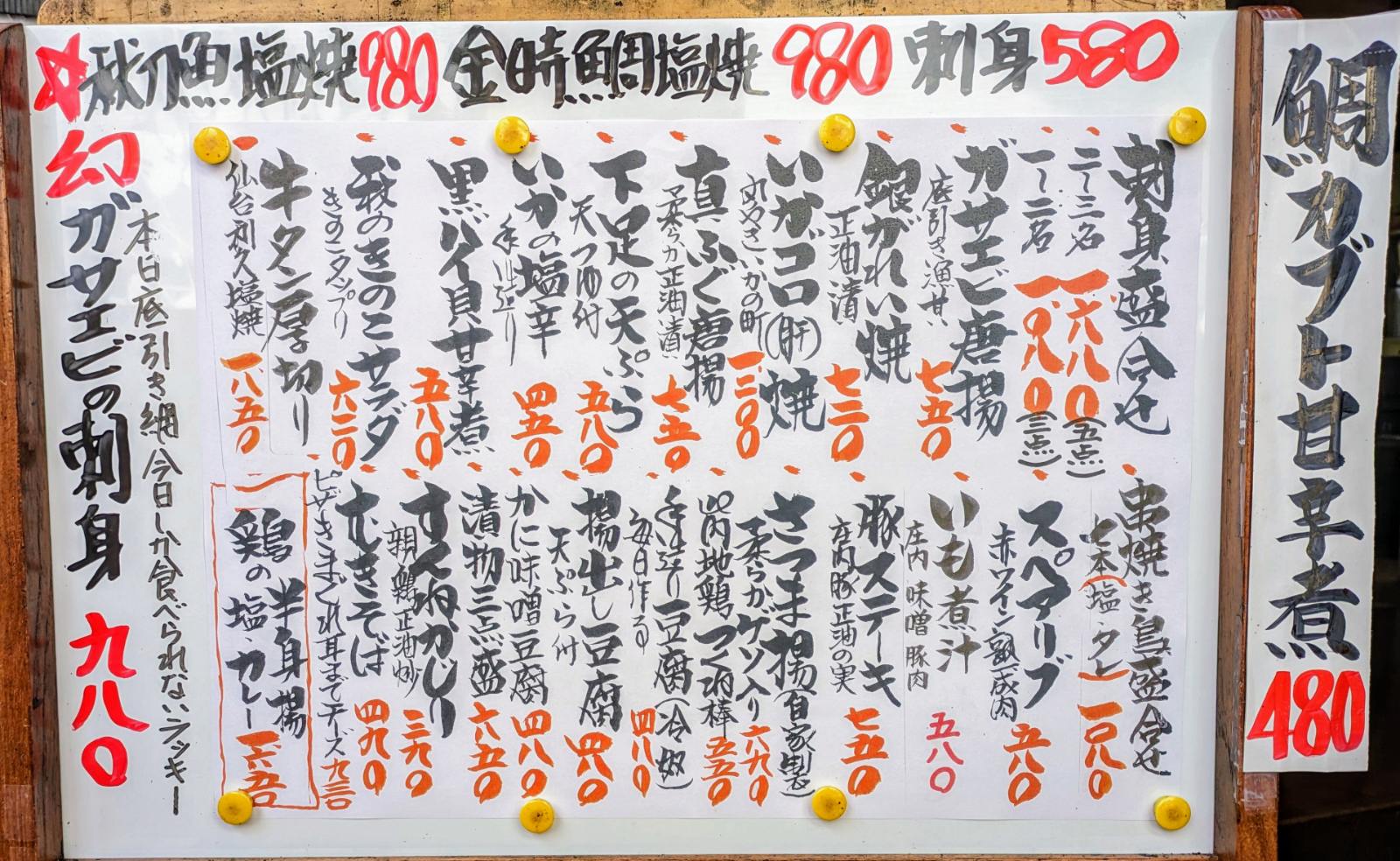 三代目兵六玉名物おすすめボード!!「人気メニュー」や「季節のおすすめ料理」が好評です!! 家飲みの肴に、持ち帰りも好評!!価格変動有り!! »