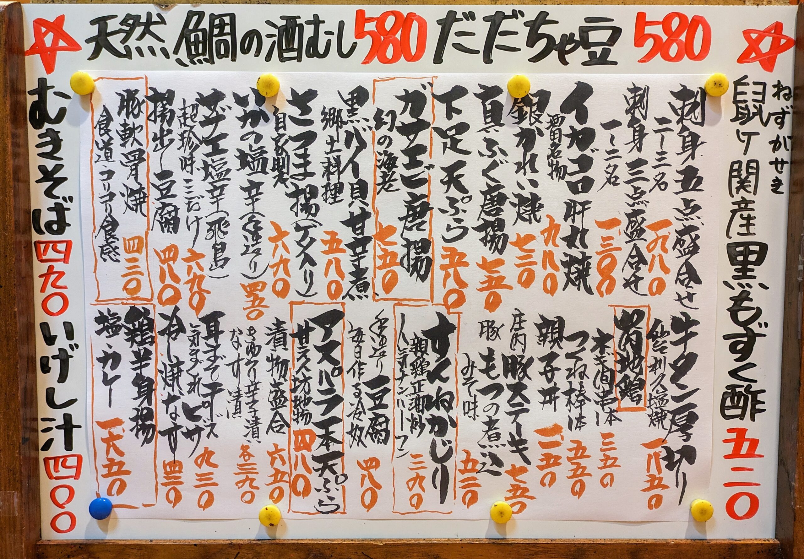 三代目兵六玉名物おすすめボード!!「人気メニュー」や「季節のおすすめ料理」が好評です!! 家飲みの肴に、持ち帰りも好評!!価格変動有り!! »
